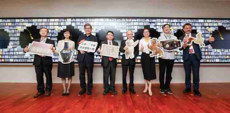 龙门国际携手创利空间为故宫建置的智慧文物互动导览墙及轮播墙,,,,今日正式启用。。。(左四:龙门国际新事业暨投资管理总部副总经理杨本豫、、右四:故宫博物院院长吴密察、、、、右三:太极影音董事长黄宝云)